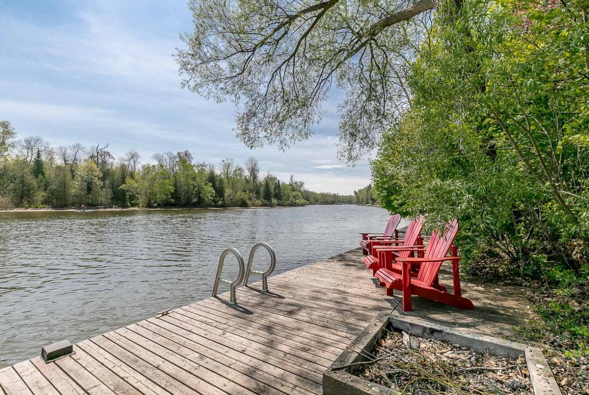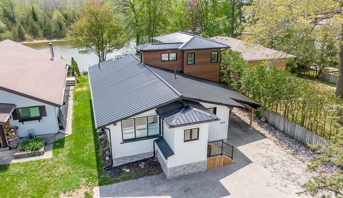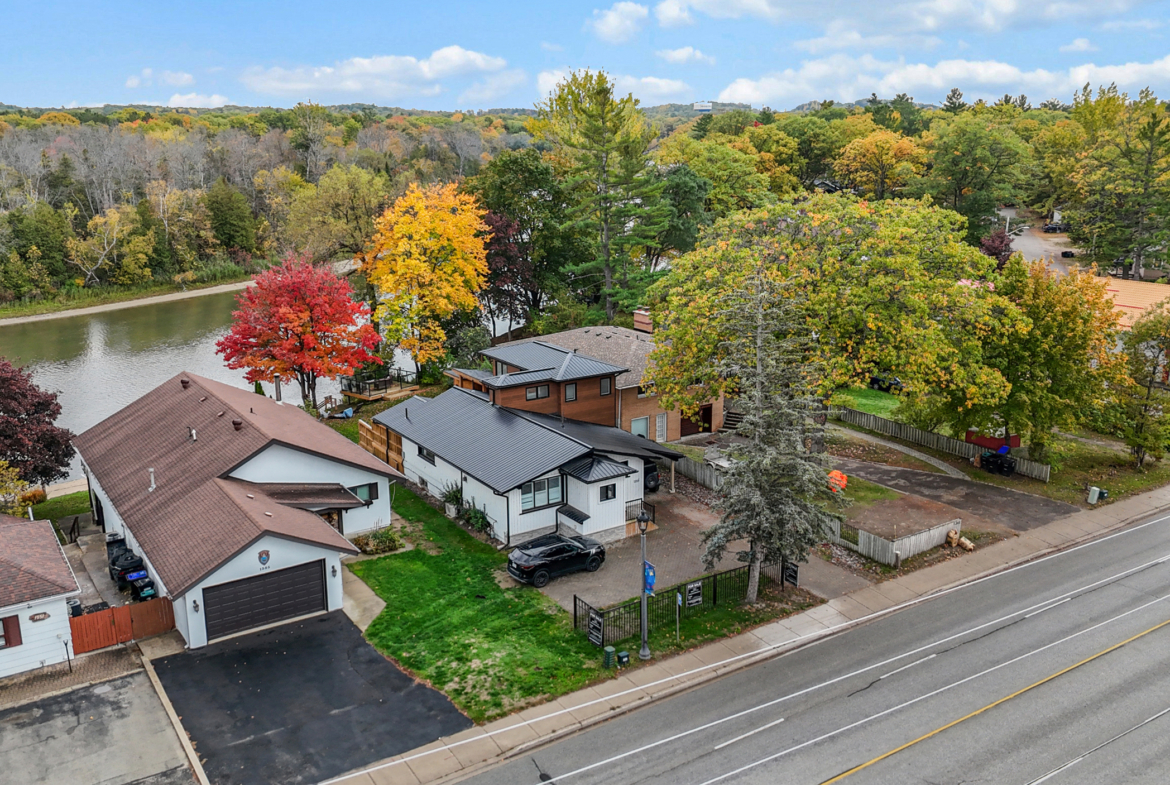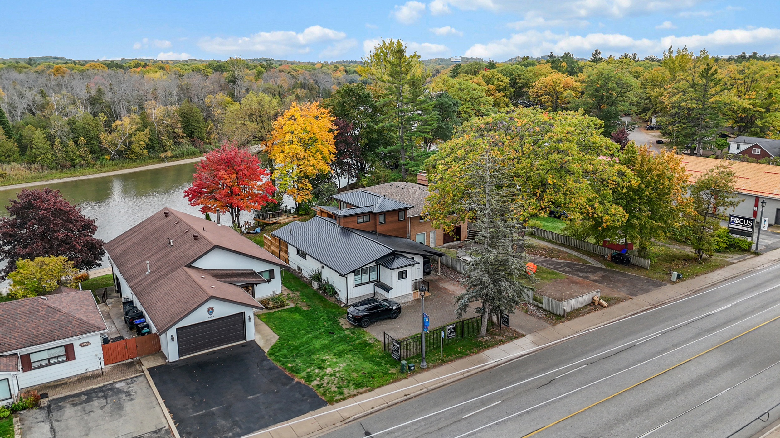 Yes, 1359 Mosley is located on a lively main road, but don’t let that fool you. The real magic happens out back! Step beyond the front door and you’re instantly transported to your own private paradise on the Nottawasaga River with direct access to Georgian Bay. Paddle out from your backyard, soak in the views, or unwind in the hot tub under the stars. While the front offers the convenience of being close to everything, the back delivers tranquility, adventure, and true waterfront living. It really is the best of both worlds. Inside, the open-concept layout has a coastal vibe with gorgeous hardwood floors. The living area features a custom shiplap gas fireplace, perfect for cozy nights, while the walkout from the main floor opens to a covered deck ideal for BBQs and entertaining. The stylish two-tone kitchen, designed by Granite Works, showcases granite countertops, a peninsula with seating for two, glass cabinets with crown molding, and pull-out corner organizers. A large kitchen window captures breathtaking views of the backyard and river. In 2020, a loft addition created a private primary suite with clear Nottawasaga River views. The loft includes a spacious bedroom with crown molding, a custom walk-in closet, and a 4-piece ensuite with matte black hardware, a subway-tiled vanity and shower with honeycomb tile, and glass doors . With five bedrooms in total, this home offers plenty of space for family and guests. Two bedrooms are located on the lower level, which has a cozy cottage feel with a gas fireplace, 3-piece bathroom, dry bar, and pool table area (pool table negotiable). Step outside to an entertainer’s dream backyard featuring a large viewing deck with glass railing, a 6-person saltwater hot tub, a covered cabana, and a 2-bedroom bunkie with tiki bar. This exceptional property perfectly blends convenience and peaceful waterfront living, offering the ultimate Wasaga Beach experience.