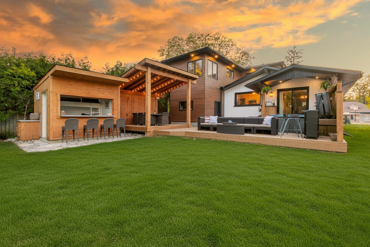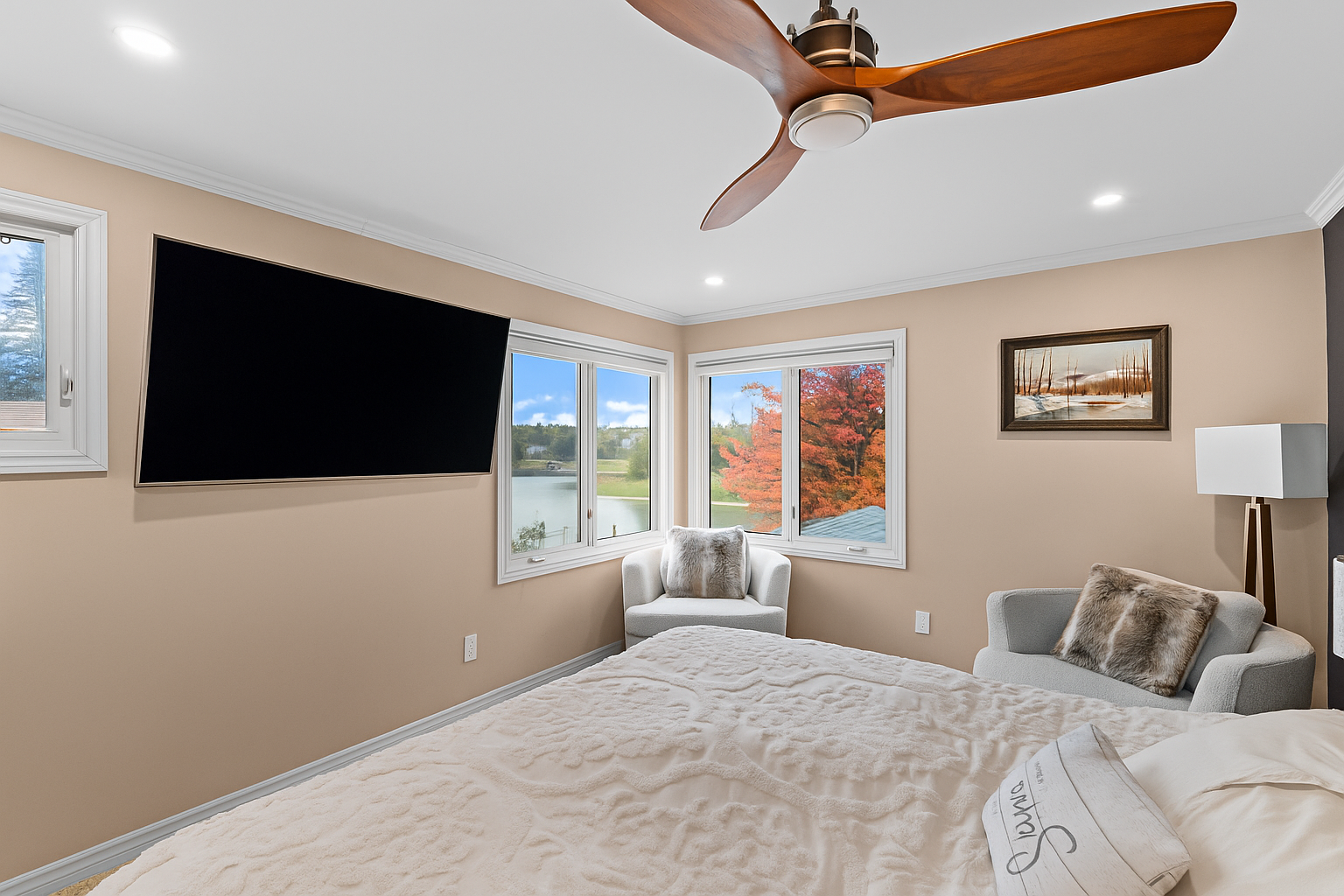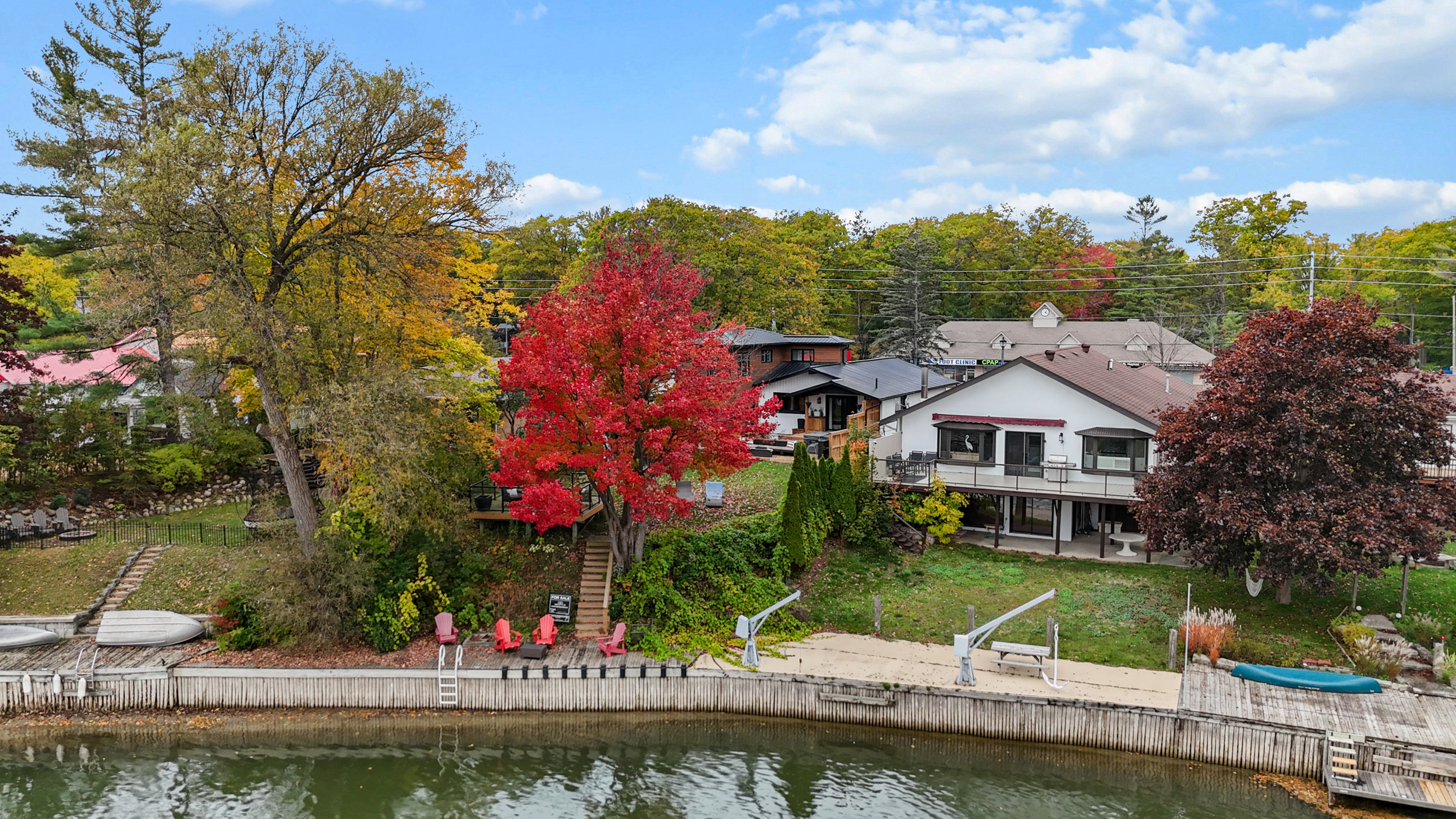 Yes, 1359 Mosley is located on a lively main road, but don’t let that fool you. The real magic happens out back! Step beyond the front door and you’re instantly transported to your own private paradise on the Nottawasaga River with direct access to Georgian Bay. Paddle out from your backyard, soak in the views, or unwind in the hot tub under the stars. While the front offers the convenience of being close to everything, the back delivers tranquility, adventure, and true waterfront living. It really is the best of both worlds. Inside, the open-concept layout has a coastal vibe with gorgeous hardwood floors. The living area features a custom shiplap gas fireplace, perfect for cozy nights, while the walkout from the main floor opens to a covered deck ideal for BBQs and entertaining. The stylish two-tone kitchen, designed by Granite Works, showcases granite countertops, a peninsula with seating for two, glass cabinets with crown molding, and pull-out corner organizers. A large kitchen window captures breathtaking views of the backyard and river. In 2020, a loft addition created a private primary suite with clear Nottawasaga River views. The loft includes a spacious bedroom with crown molding, a custom walk-in closet, and a 4-piece ensuite with matte black hardware, a subway-tiled vanity and shower with honeycomb tile, and glass doors . With five bedrooms in total, this home offers plenty of space for family and guests. Two bedrooms are located on the lower level, which has a cozy cottage feel with a gas fireplace, 3-piece bathroom, dry bar, and pool table area (pool table negotiable). Step outside to an entertainer’s dream backyard featuring a large viewing deck with glass railing, a 6-person saltwater hot tub, a covered cabana, and a 2-bedroom bunkie with tiki bar. This exceptional property perfectly blends convenience and peaceful waterfront living, offering the ultimate Wasaga Beach experience.