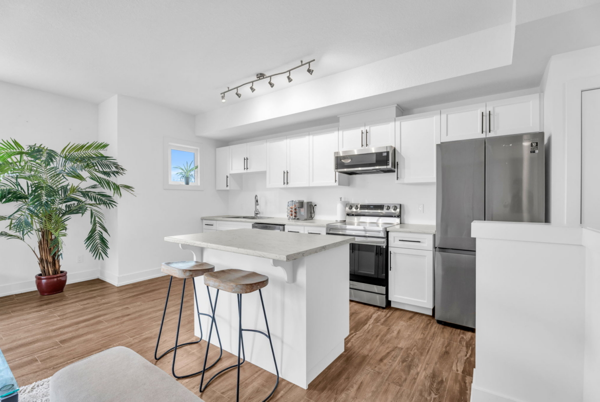 Wake up to soft morning light filtering through the windows of your bright, open concept condo townhome. You ease into the day with a coffee in hand, stepping out onto your private balcony where mature trees offer a peaceful, quiet start before the world gets busy.