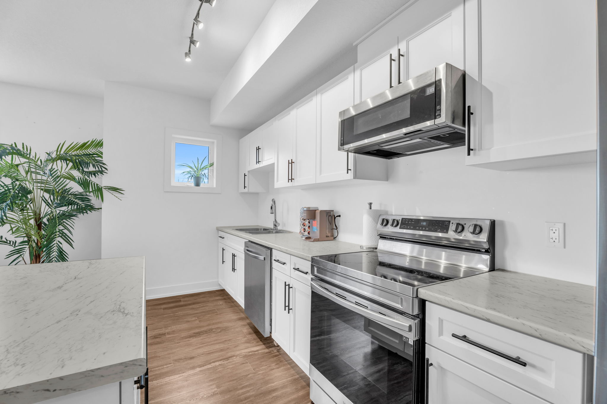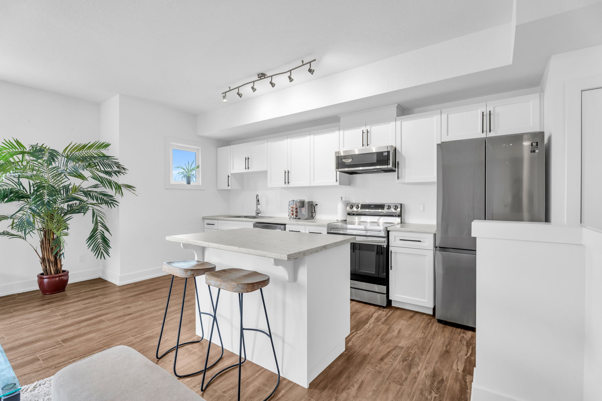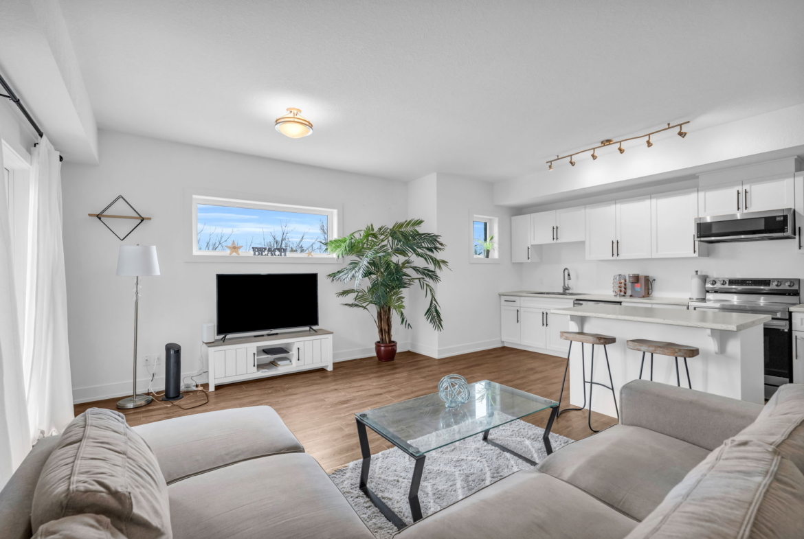 Inside, the modern kitchen is ready for whatever the day brings whether it’s a quick breakfast at the island or prepping something more elaborate with your stainless steel appliances. The flow between the kitchen and living space makes everything feel connected, easy and comfortable.
