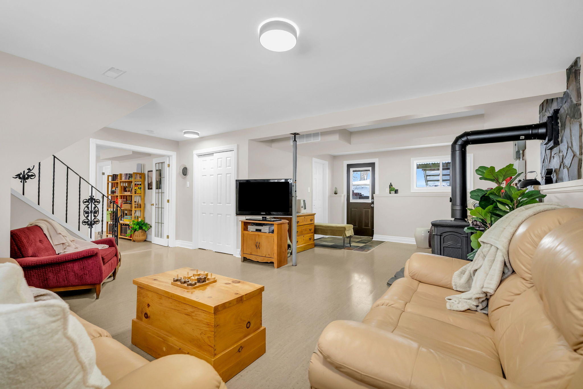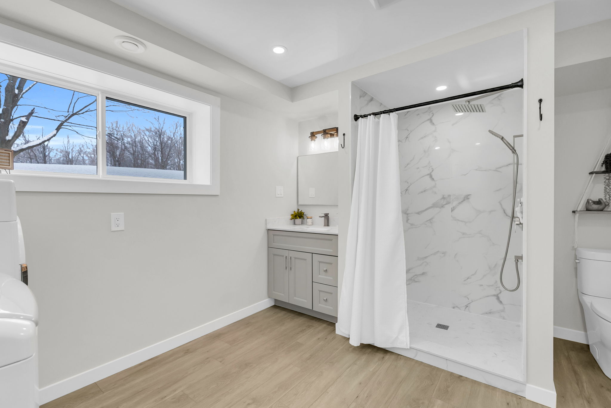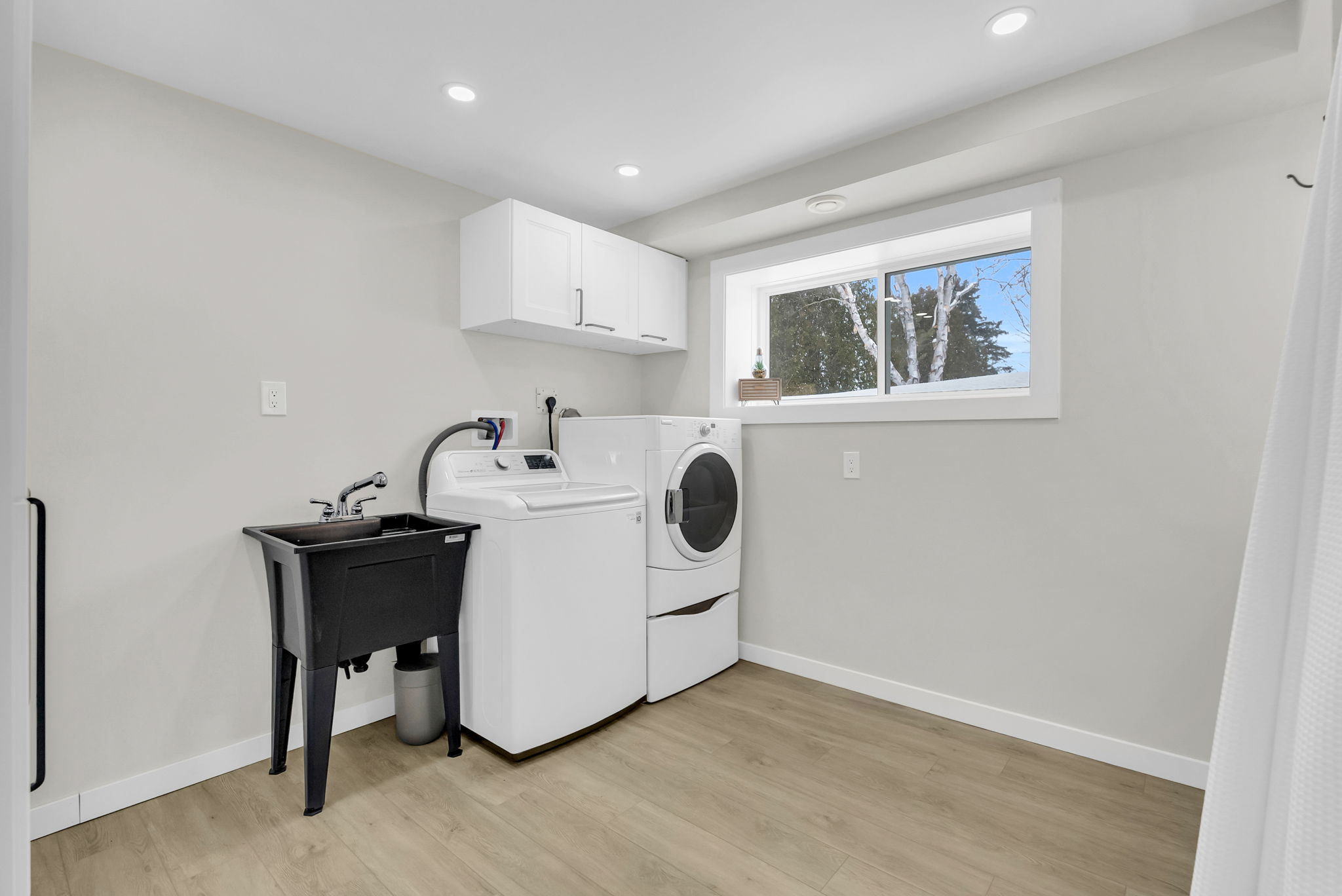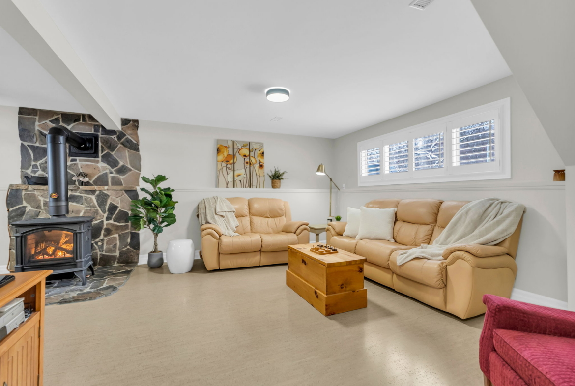 The updated bathroom and laundry room (2024) provide modern convenience with added storage cabinetry. The bright walk-up basement features large lookout windows, a separate entrance, and excellent potential for a future multi-generational living setup or additional living space.