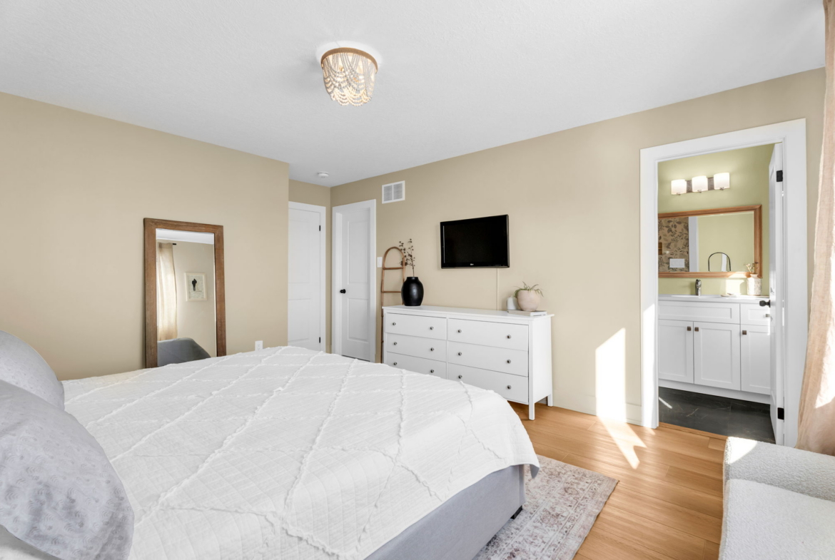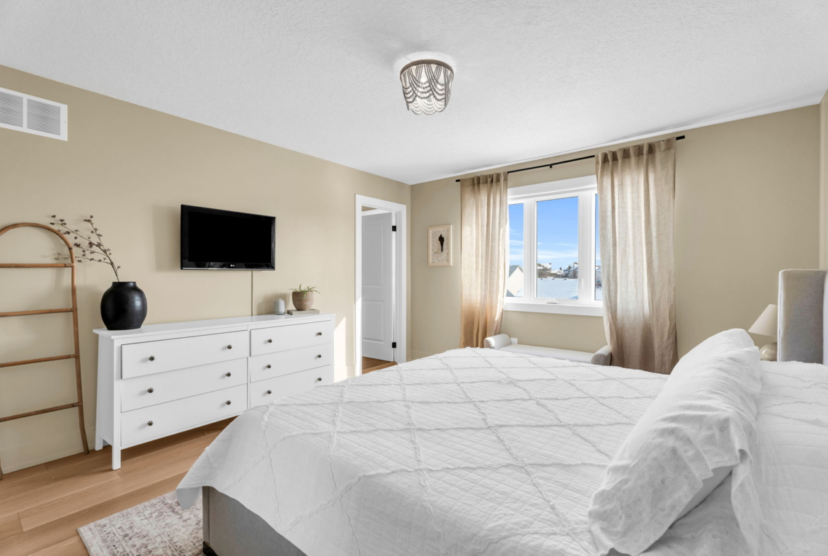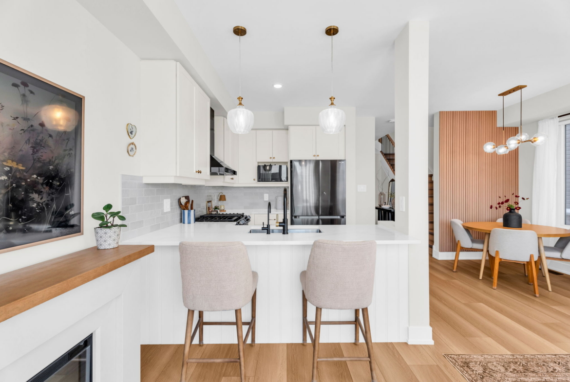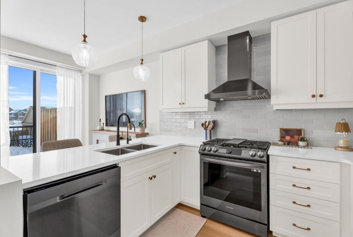 Arguably the finest townhouse currently on the market in Orangeville. This stunning end-unit looks straight out of a magazine and offers a level of finish rarely seen. Unlike new-build options that arrive as “empty shells,” this home is fully loaded with over $15,000 in extras, including appliances, interior upgrades and custom window coverings. The 1,411 sq. ft. floor plan feels incredibly airy thanks to 9-foot ceilings and an open-concept main floor that flows seamlessly from the spacious living area to the dining room. The bright, designer kitchen is a standout, finished with quartz counters, a stylish backsplash, and ample cabinetry. Upstairs, the home features 3 generous bedrooms, including a primary suite with a walk-in closet and a 5-piece ensuite. Added value continues in the bright walk-out basement, which includes a bathroom rough-in and is ready for your finishing touches. Perfectly located in a sought-after west-end neighborhood, you are steps away from local boutiques, coffee spots, walking trails, and the new subdivision park. Truly move-in ready-nothing left to do but enjoy. The main floor and upstairs have recently professionally painted.