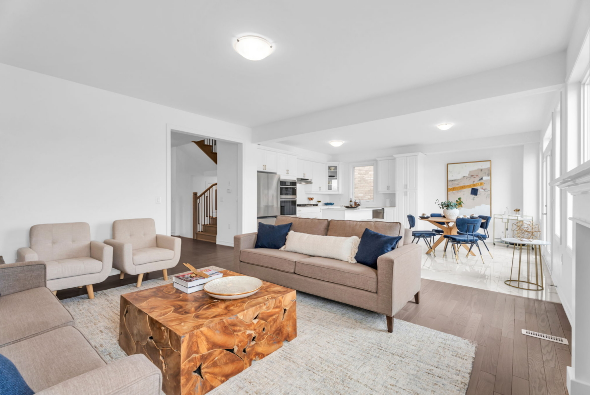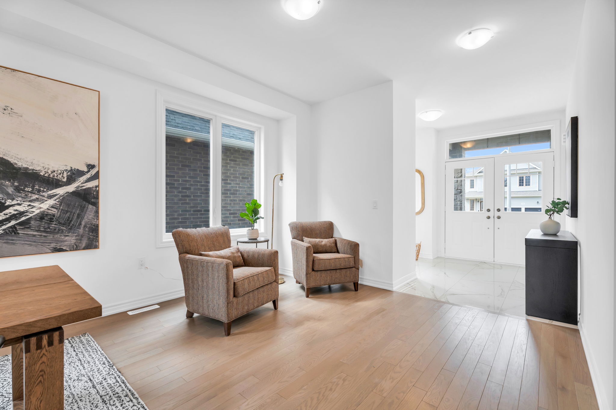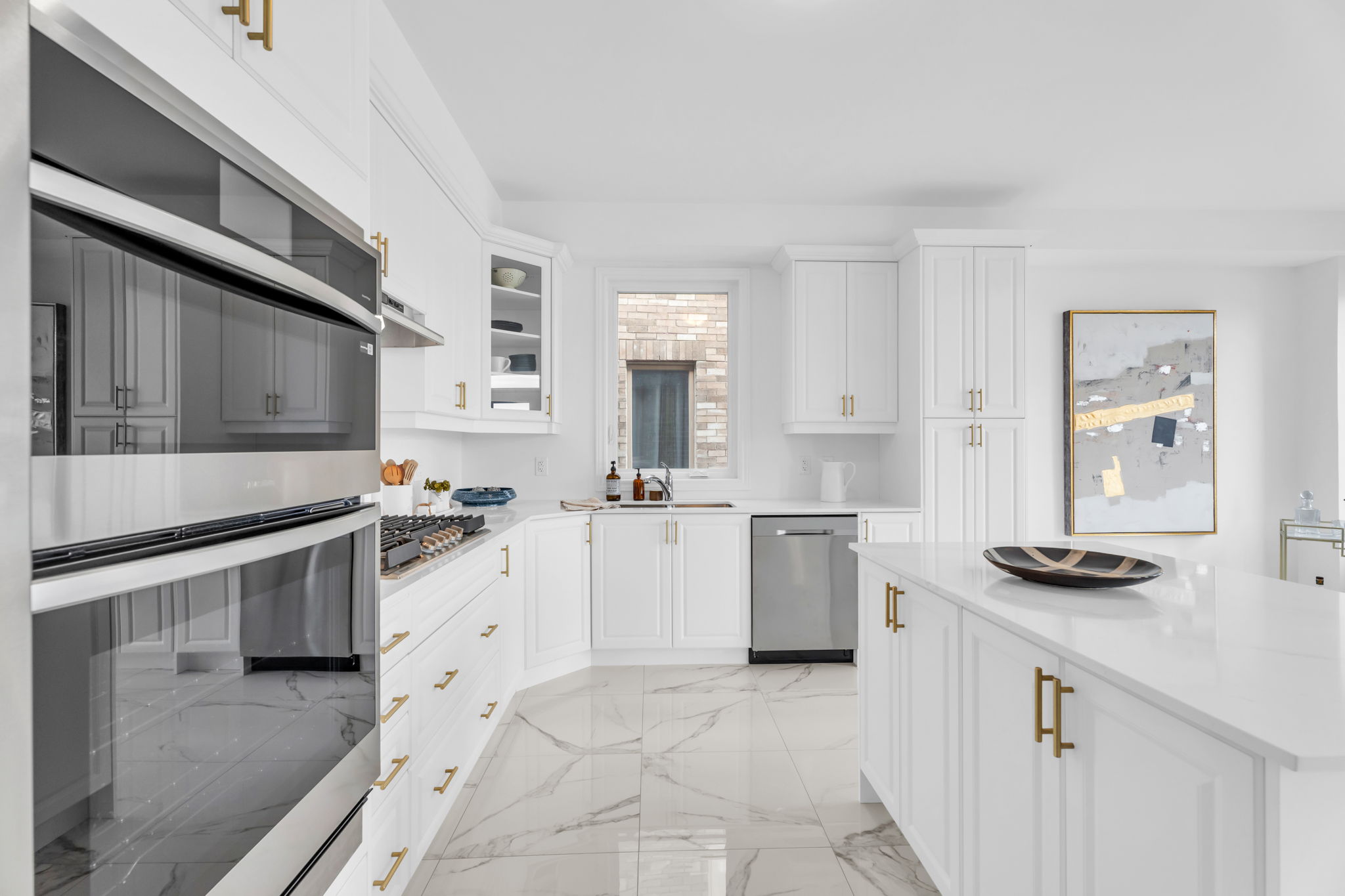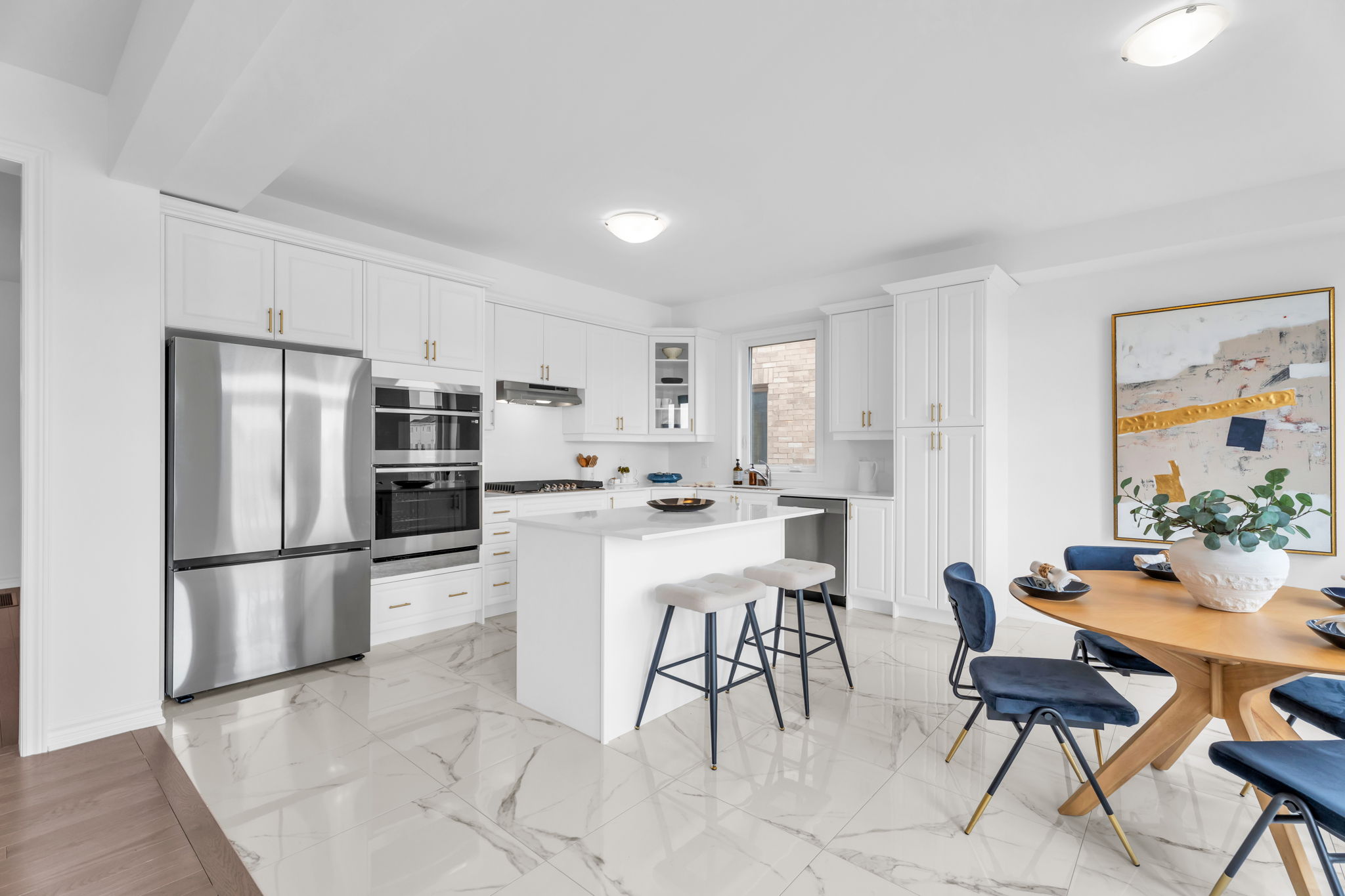 Welcome to this breathtaking, never-lived-in model home-a true showstopper that defines modern luxury and sophistication. Offering approximately 2,850 sq.ft. of impeccably designed living space in a rapidly growing neighbourhood, this is a rare opportunity that won’t last long. From the moment you enter, you’re greeted with refined finishes and a sense of elevated living throughout. Featuring four spacious bedrooms, each with its own private ensuite, this home delivers an exceptional level of comfort, privacy, and upscale convenience. The primary suite is nothing short of a private retreat, showcasing a massive walk-in closet and a spa-inspired ensuite with double sinks, a glass-enclosed shower, and a luxurious soaker tub. At the heart of the home lies a stunning, designer chef’s kitchen that is truly magazine-worthy. Featuring a built-in oven and cooktop, this space is highlighted by upgraded quartz countertops, a large centre island, and gleaming oversized tile flooring. Crisp cabinetry, abundant natural light, and refined finishes create the perfect setting for both everyday living and effortless entertaining. The open- concept layout flows seamlessly into the family room, a warm and inviting space designed for both relaxation and gathering. Anchored by a striking electric fireplace with a timeless white mantel and clean architectural detailing, this room creates an elegant focal point. Flanked by large windows that flood the space with natural light and frame tranquil views, the family room offers a perfect balance of comfort and sophistication. Enjoy carpet-free living throughout the main floor. Step outside from the walkout basement backing onto a tranquil pond, offering a serene backdrop and endless potential to create your own outdoor oasis. Move-in ready and curated with luxurious upgrades throughout, this exceptional home shows 10+++ and stands out as a true masterpiece-a must-see for buyers seeking a turnkey, high-end lifestyle.